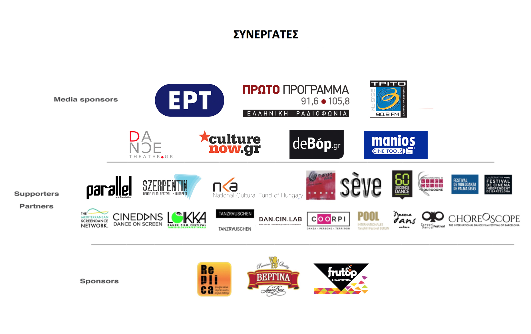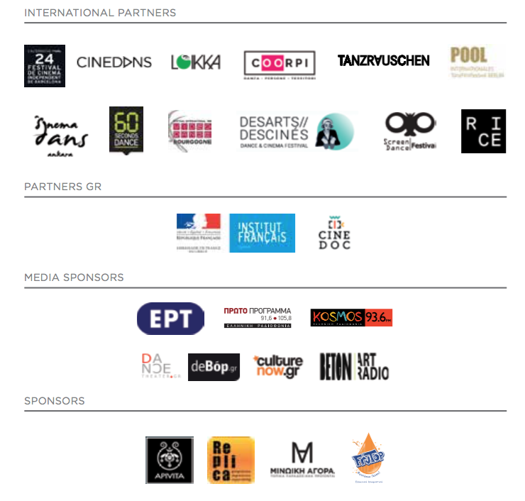 Σε συνεργασία με: Υπουργείο Πολιτισμού, ΕΡΤ, GOETHE INSTITUT ATHENS, INSTITUT FRANÇAIS DE GRÈCE, ISTITUTO ITALIANO DI CULTURA, Θέατρο του Νέου Κόσμου, Dancetheater.gr, CineDoc, ARTHAUS MUSIK, Key Film, Κέντρο Μελέτης και Χορού Ντάνκαν